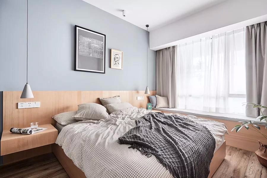 有2個臥室,還有1個小書房,布局真的很不錯。整個家大量搭配了原木家具,清新又自然,文藝又有格調(diào),好喜歡這種休閑又放松的家居氛圍。很多人問我客廳刷什么顏色的乳膠漆好,我覺得淺灰色不錯,客廳采光特別的給力,好喜歡休閑飄窗的設(shè)計,視野十分開闊,看書休憩都特別的舒服。淺灰色調(diào)不會顯得過于沉穩(wěn),在布藝中加些暖色,會更顯休閑溫馨感。軟裝搭配細節(jié)放大看一看,哈哈,質(zhì)感真的不錯,黃色抱枕真的超愛了!搭配個小邊幾,擺上綠植,清新又養(yǎng)眼,裝修的時候墻面別忘了預留插頭,平時充電會更方便些.主臥的采光也特別棒,整個空間氛圍清新又自然。很喜歡床頭木質(zhì)護墻板的設(shè)計,和臥床、床頭柜融為一體,十分的協(xié)調(diào)。廚房雖然面積不大,但也打造出U型布局,動線合理,操作方便。很喜歡這種時尚中融入清新色調(diào)的搭配了。冰箱也有了歸屬感!