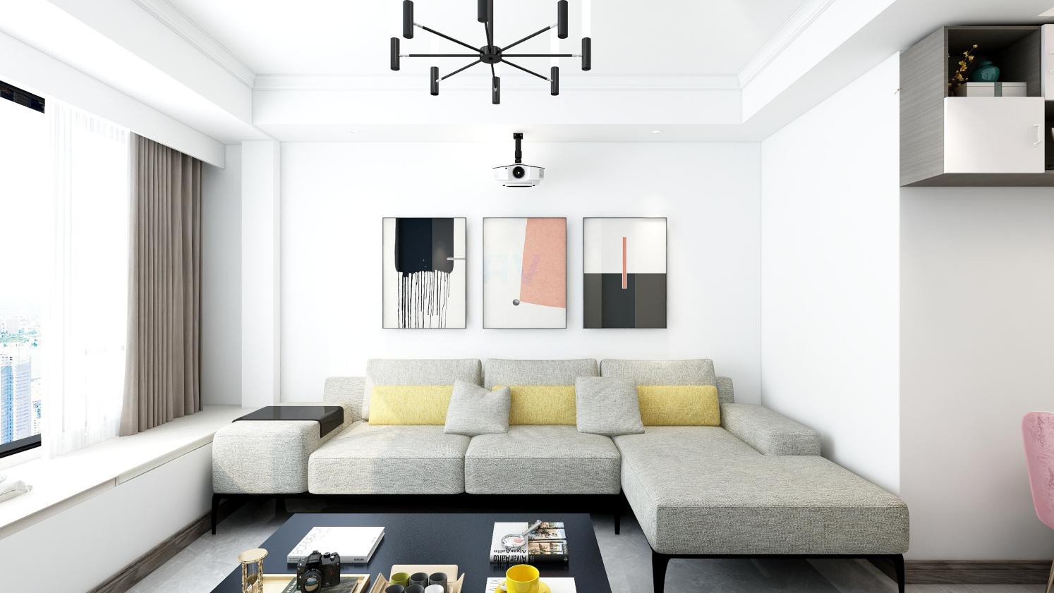 電視背景墻以少即是多的態(tài)度為室內塑造更多的想象空間,大面積留白的思路結合跳脫的藍色色點綴呼應,回歸到電視墻本質把視覺更多留在電視。